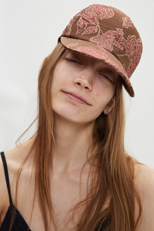 One of the most classic baseball cap made of precious brocade fabric, lining with adjustable cotton strap closure.